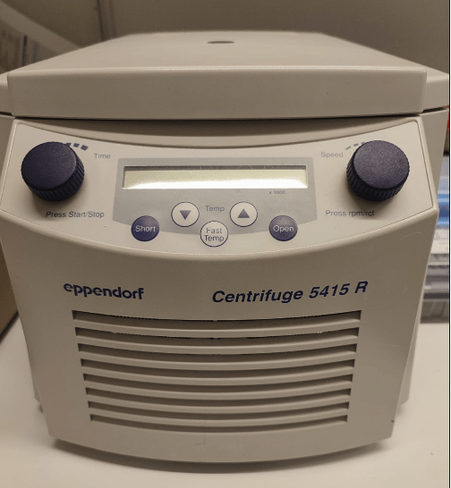 6000 SEKCentrifug 5415R (bought in 2008). Refrigerated microcentrifuge (24 × 1.5/2.0 mL) for routine molecular biology; typical max speed ~13–14k rpm with fixed-angle rotor; compact footprint for benchtop use. No active service agreement included; buyer handles calibration, software updates and routine maintenance. Operational status as-is; inspection recommended prior to purchase.