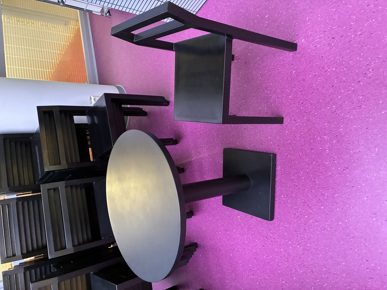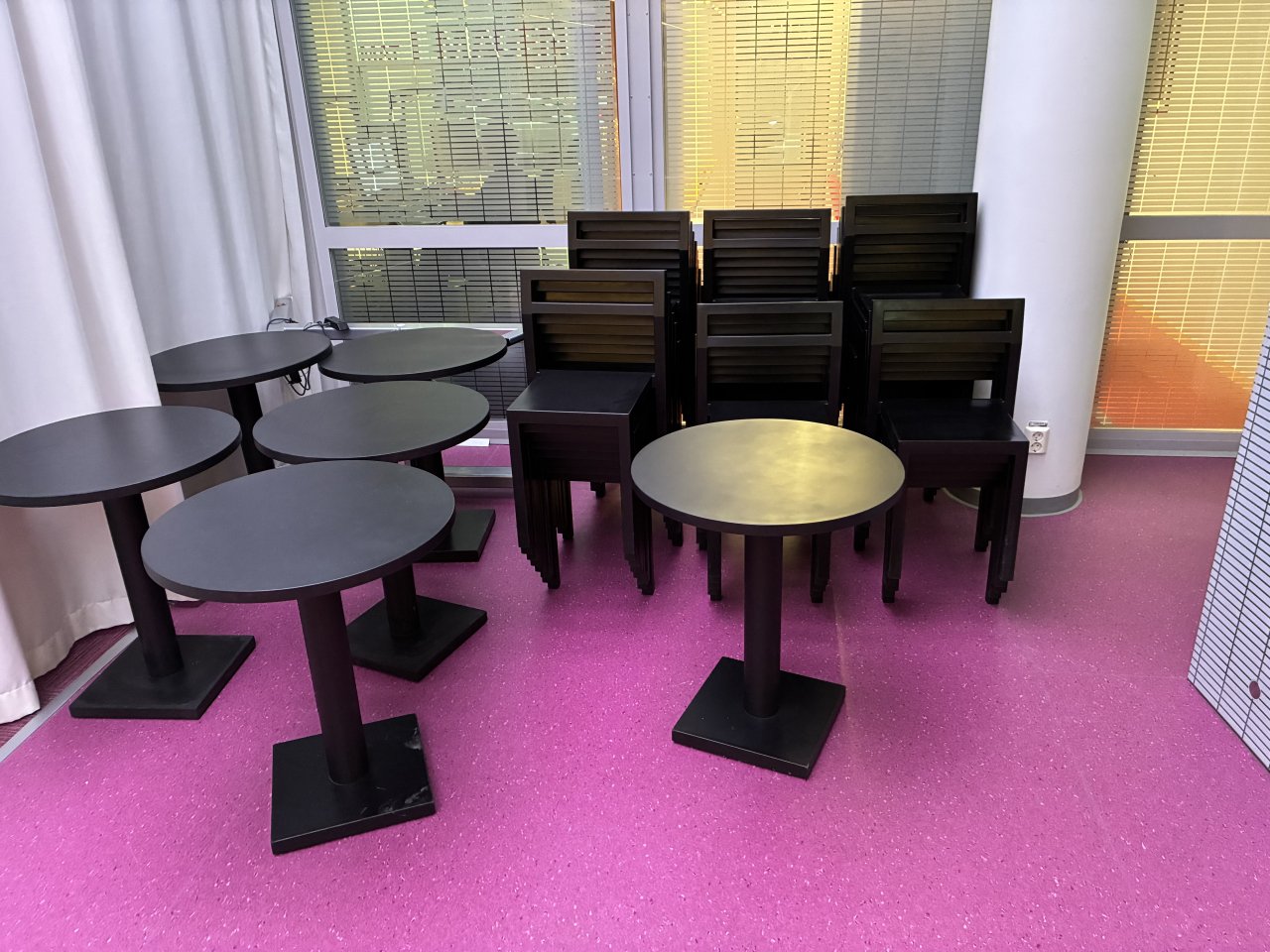 Ca 40 stolar och 10 bord av Boris Berlin och Poul Christiansen bortskänkes pga platsbrist hos oss i biblioteket i Flemingsberg. Passar exempelvis för cafésittning. Hämtas så snart som möjligt då nya möbler är på väg in nästa vecka!