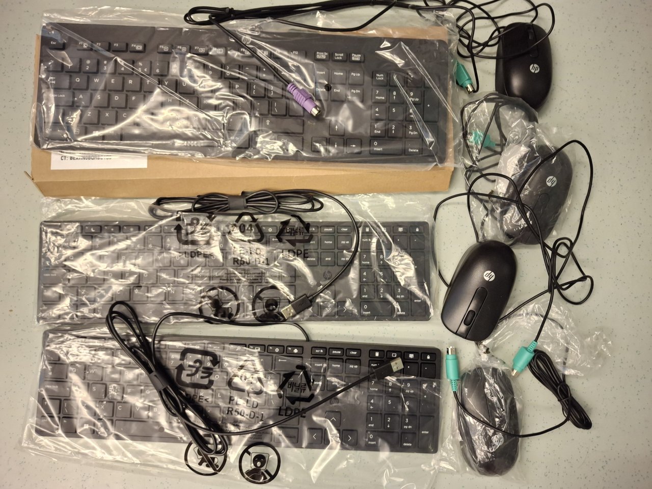 - 3 new HP low profile keyboards (English layout), 2 with USB and 1 with PS/2 connection (for desktop computer)