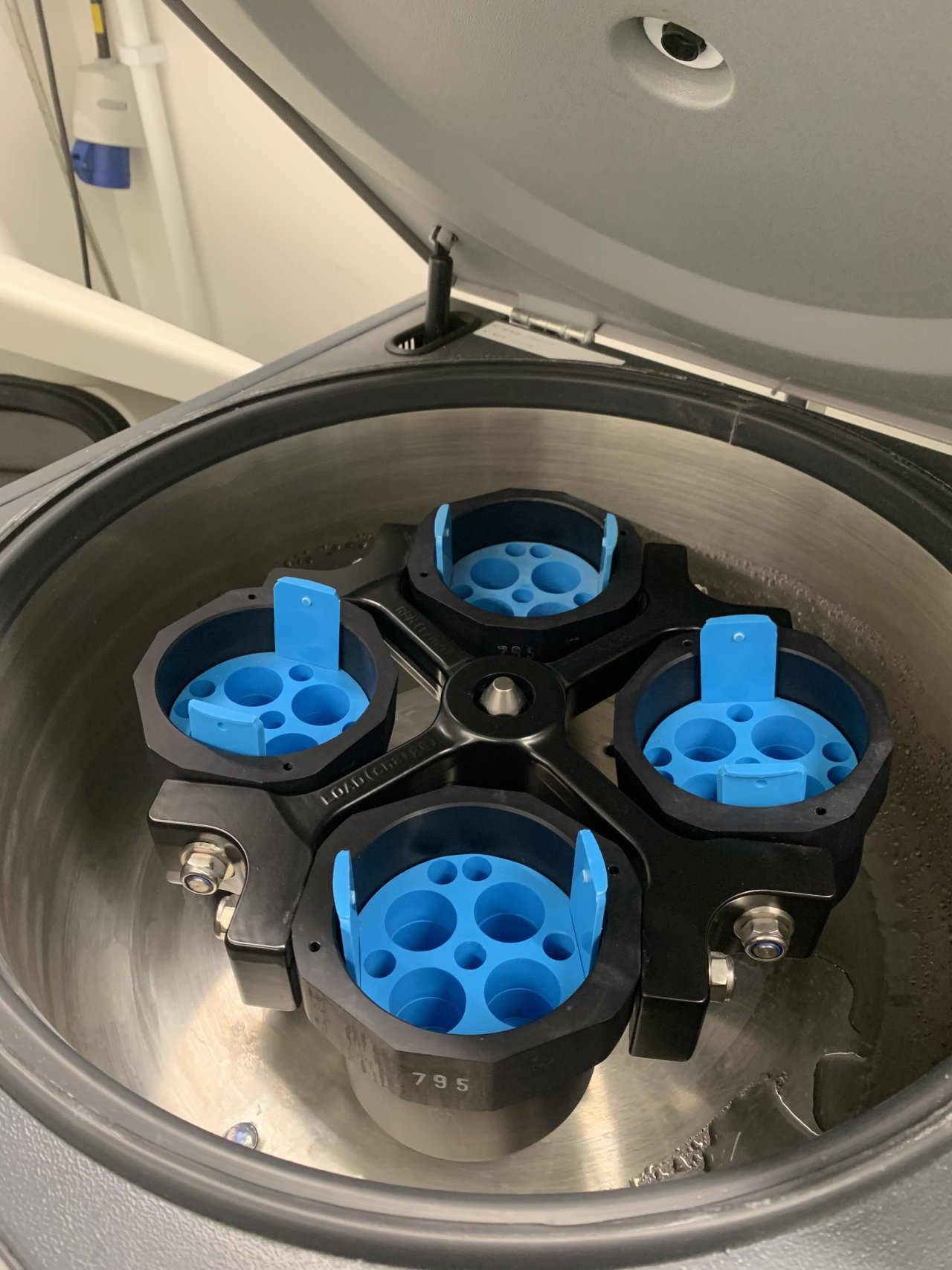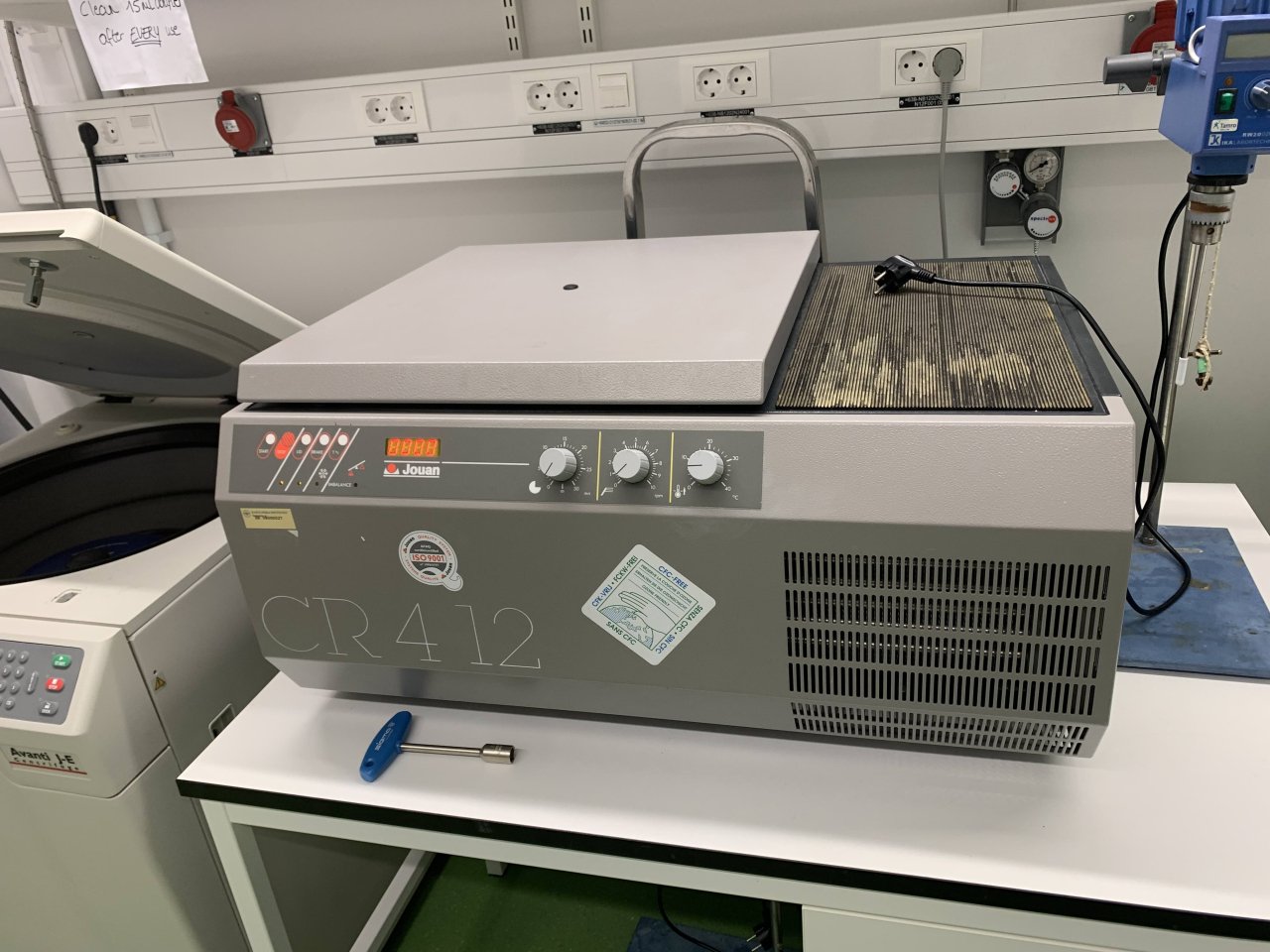 1000 SEKJouan CR412 refrigerated centrifuge for falcon tubes. Works fine, but lid needs to be lifted manually. Good for 15ml and 50ml Falcon tubes. Max speed 10 000 rpm. Weighs ca 60kg. Located in BioClinicum, Solna.